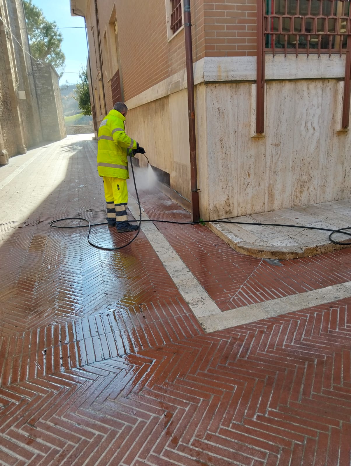 Questa mattina, nel centro storico di Campli, una squadra operativa di Rieco ha effettuato un intervento straordinario di lavaggio, pulizia e disinfezione approfondita delle vie e delle strade del paese, realizzato con l’impiego di un mezzo operativo dotato di idropulitrice, con l’obiettivo di migliorare il decoro urbano e la pulizia delle aree maggiormente frequentate.